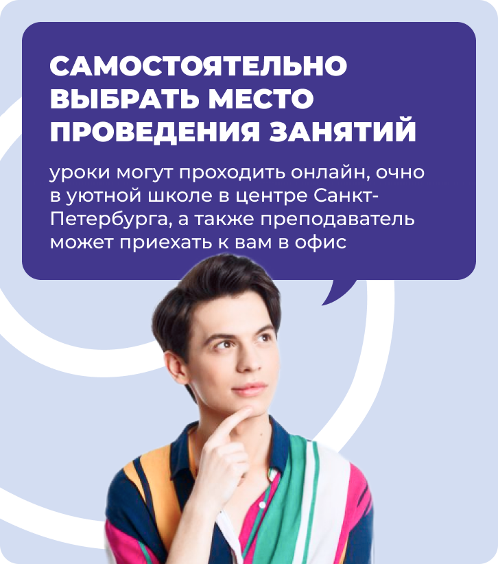 Однако, вы будете работать со всеми аспектами языка: понимание на слух, произношение, грамматика, словарный запас, чтение, письмо и разговор.